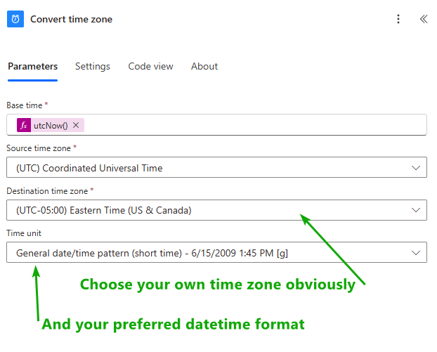 But why do we need to convert the time in the first place? Again, this isn’t required, but Power Automate uses UTC time by default for its date and time operations and I’m lazy and would rather not do the math.