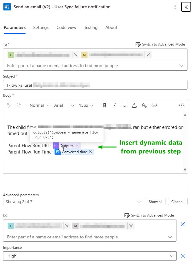 That’s it, now you don’t have to scroll and hunt and peck through pages of Flow history runs to find the one that had a problem, it’s waiting for you in your inbox. And if you don’t want to send an email, you have the URL so you can do anything with it - log it to a table or list, send a Teams message, create a Planner task to investigate the issue, whatever!